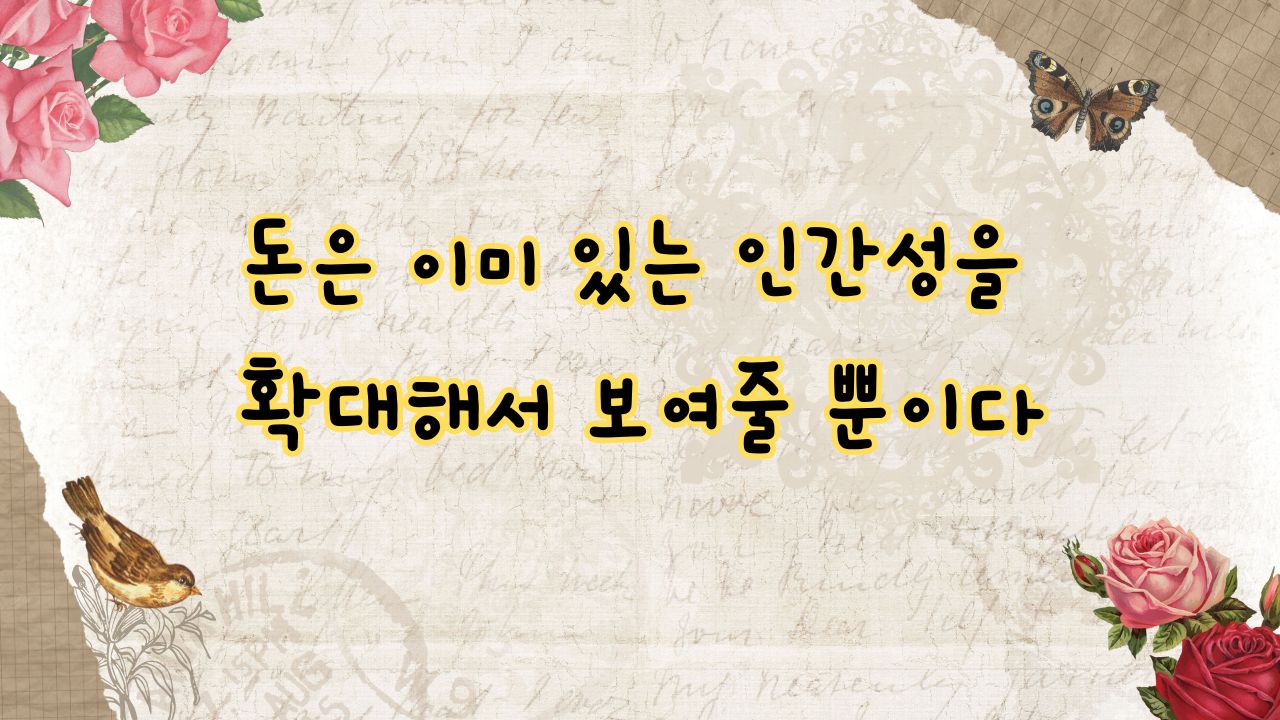 사실은 그 사람의 고약한 본성이 그저 돈을 매개로 드러났을 가능성이 높다. 사람의 본바탕은 부유하든 가난하든 쉽게 변하지 않는다.