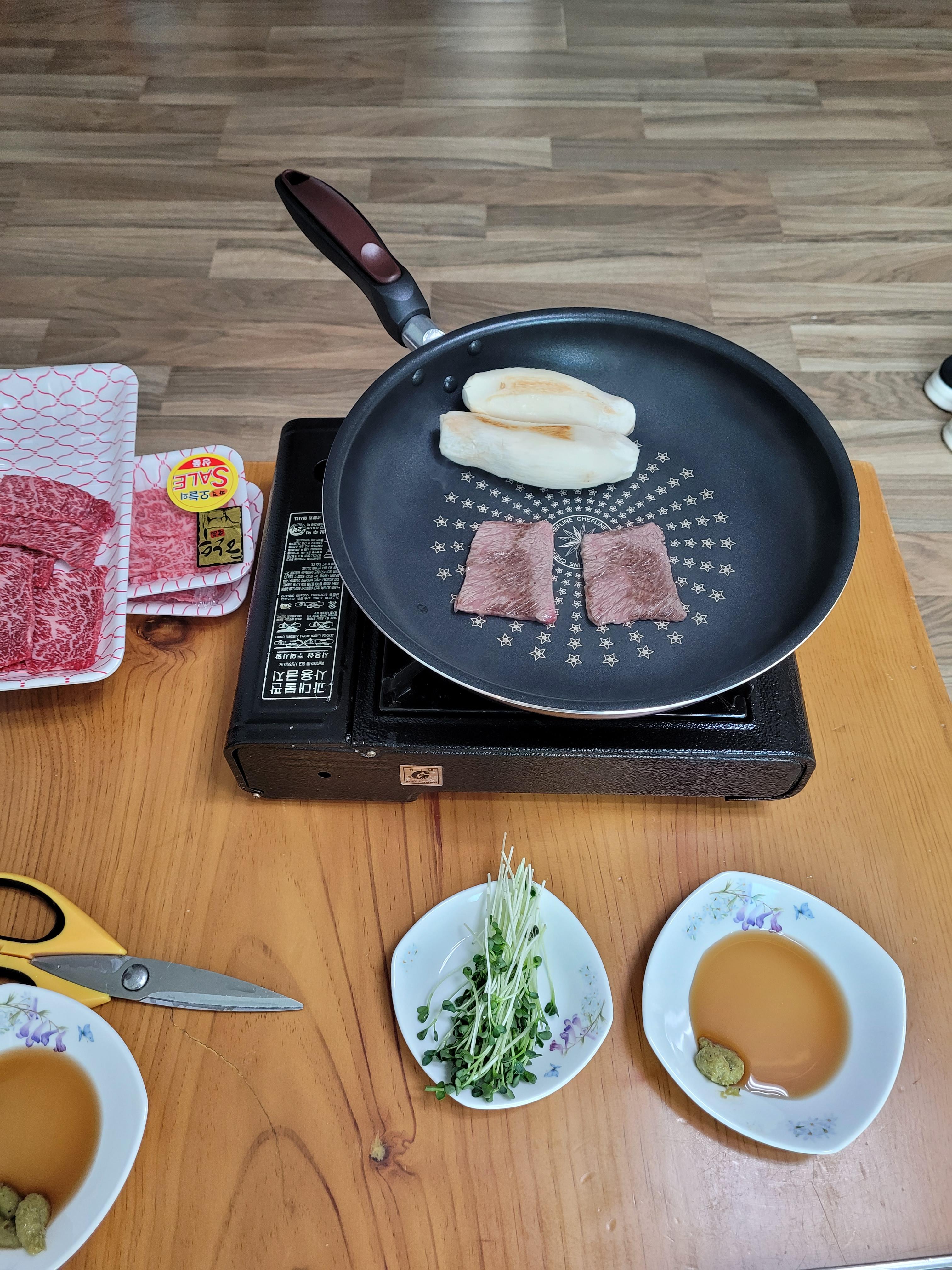 점심으로 소고기 구워먹음.
