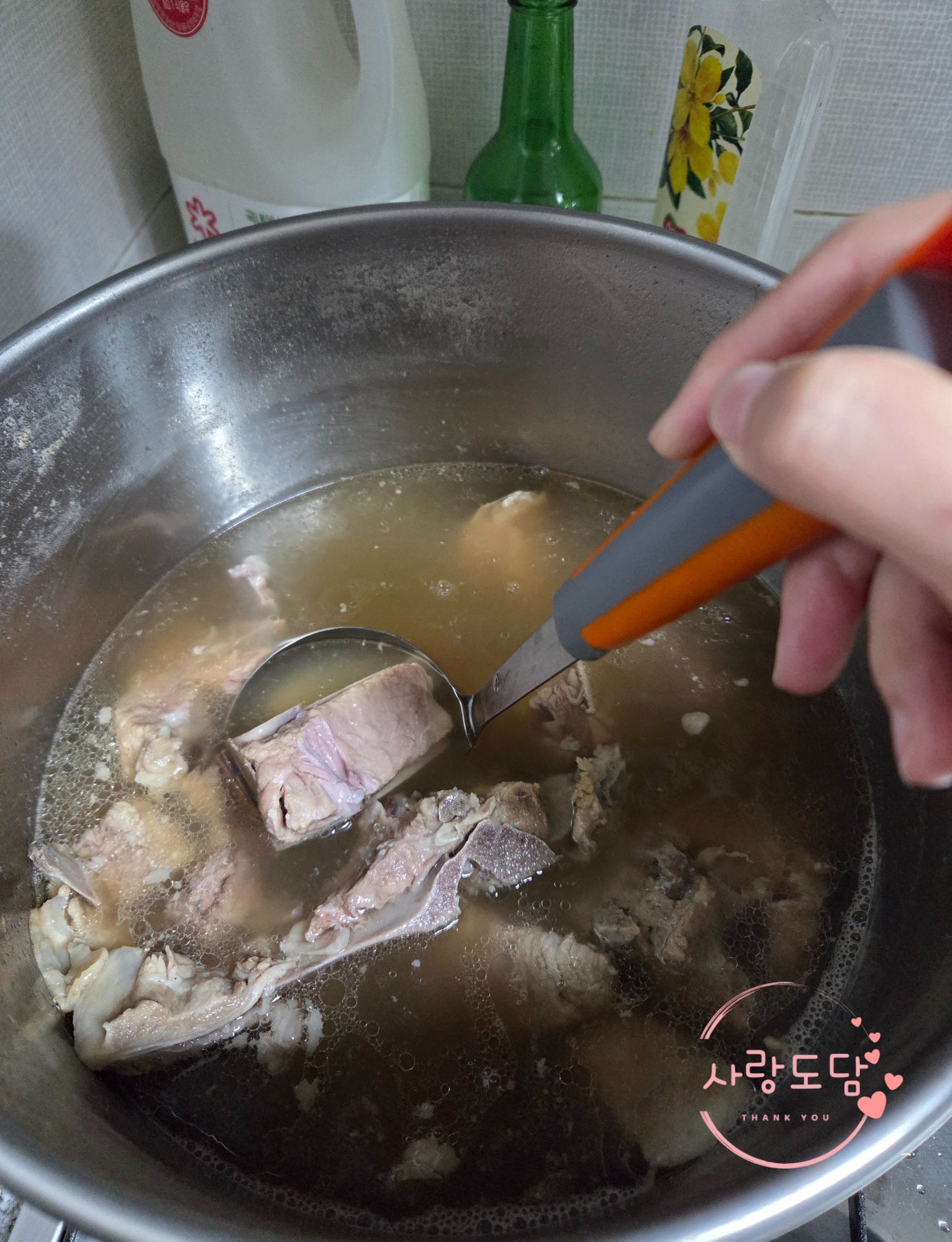 이날은 뼈찜을 해먹기 위해 아침에 시장가서 뼈를 사와서 끓였어요